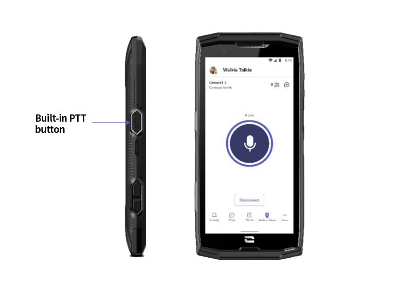 Walkie Talkie 앱은 Teams 내에서 직접 구축된 친숙한 푸시 투 토크(push-to-talk) 경험을 제공함으로써 프론트라인 작업자들이 서로 안전하게 통신하는 방법을 간소화하도록 도와줍니다. 프론트라인 팀은 주파수 정적이나 크로스 토크를 걱정할 필요 없이 전 세계 어디에서나 즉시 통신할 수 있습니다.